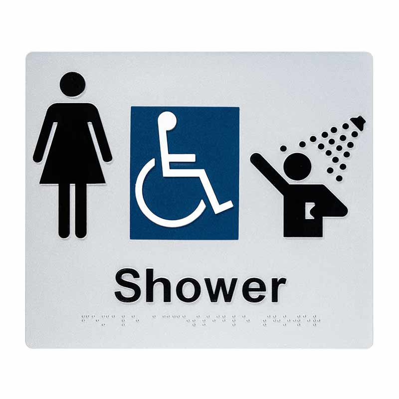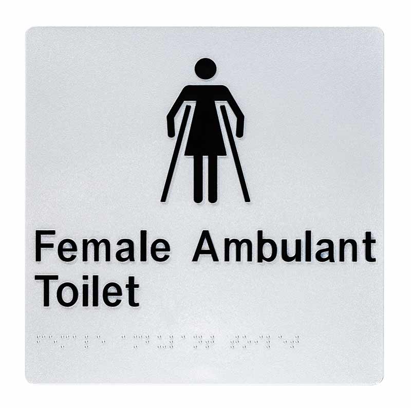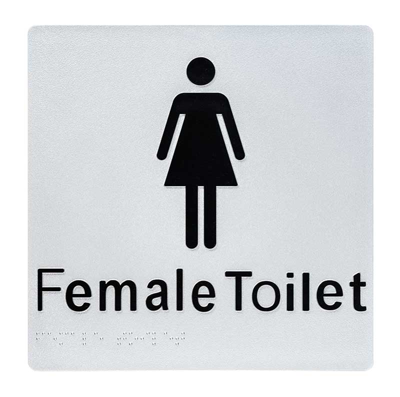 Female braille signs ensure accessible navigation in restrooms and public spaces. Designed to AS1428.1 standards with tactile letters and braille, they offer durable, vandal-resistant signage for inclusive, compliant environments.