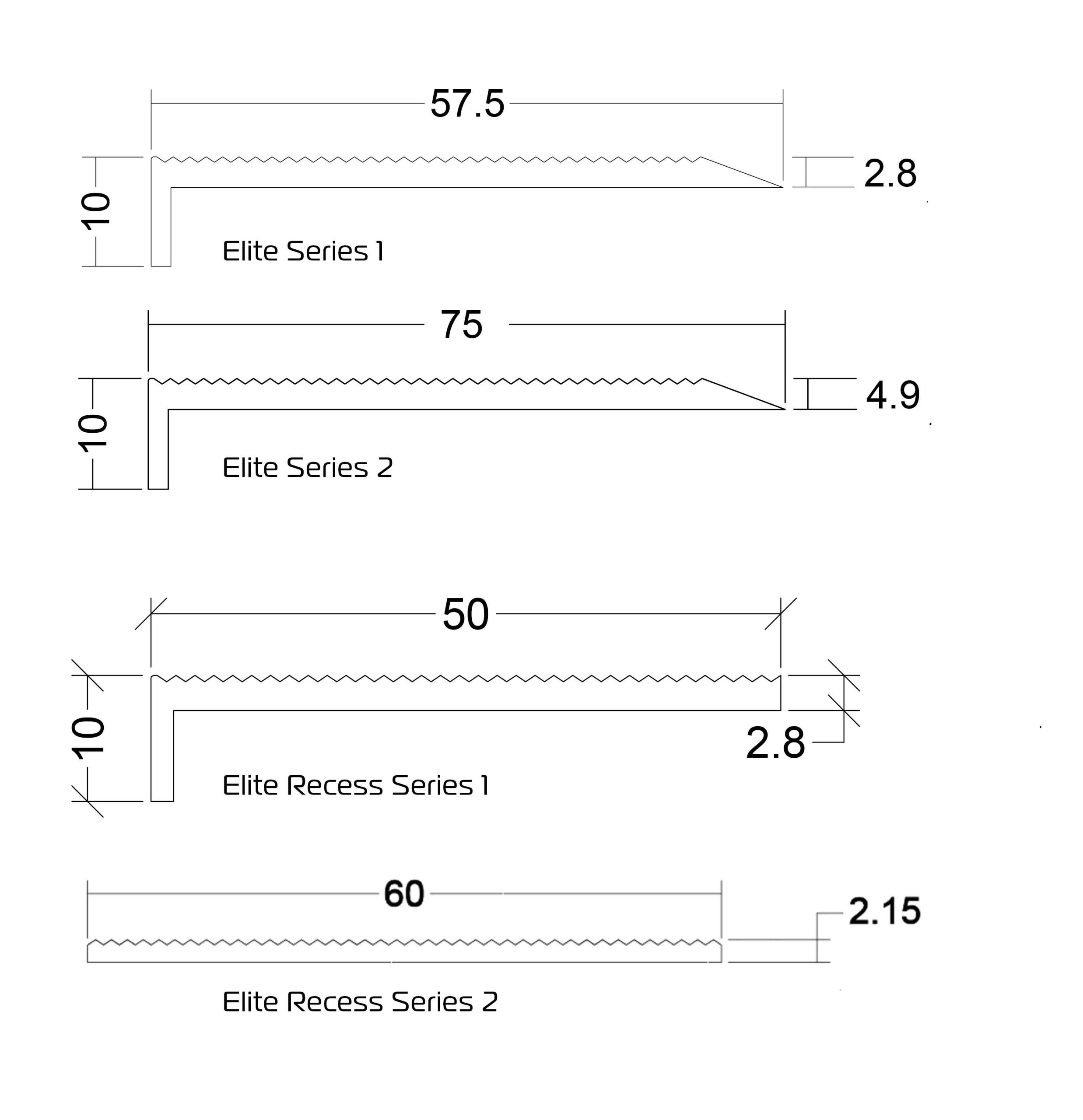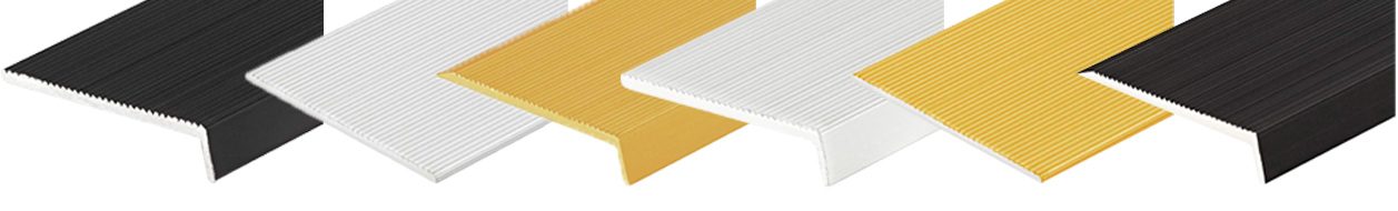 Elite Series Stair Nosing features clear, black anodised aluminium, or brass look cataphoresis finish.