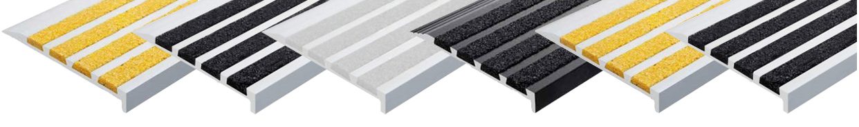 Tactile Systems Australia Select Series 4 Surface Mount stair nosing features clear anodised aluminium matched with a high-grade carborundum insert.