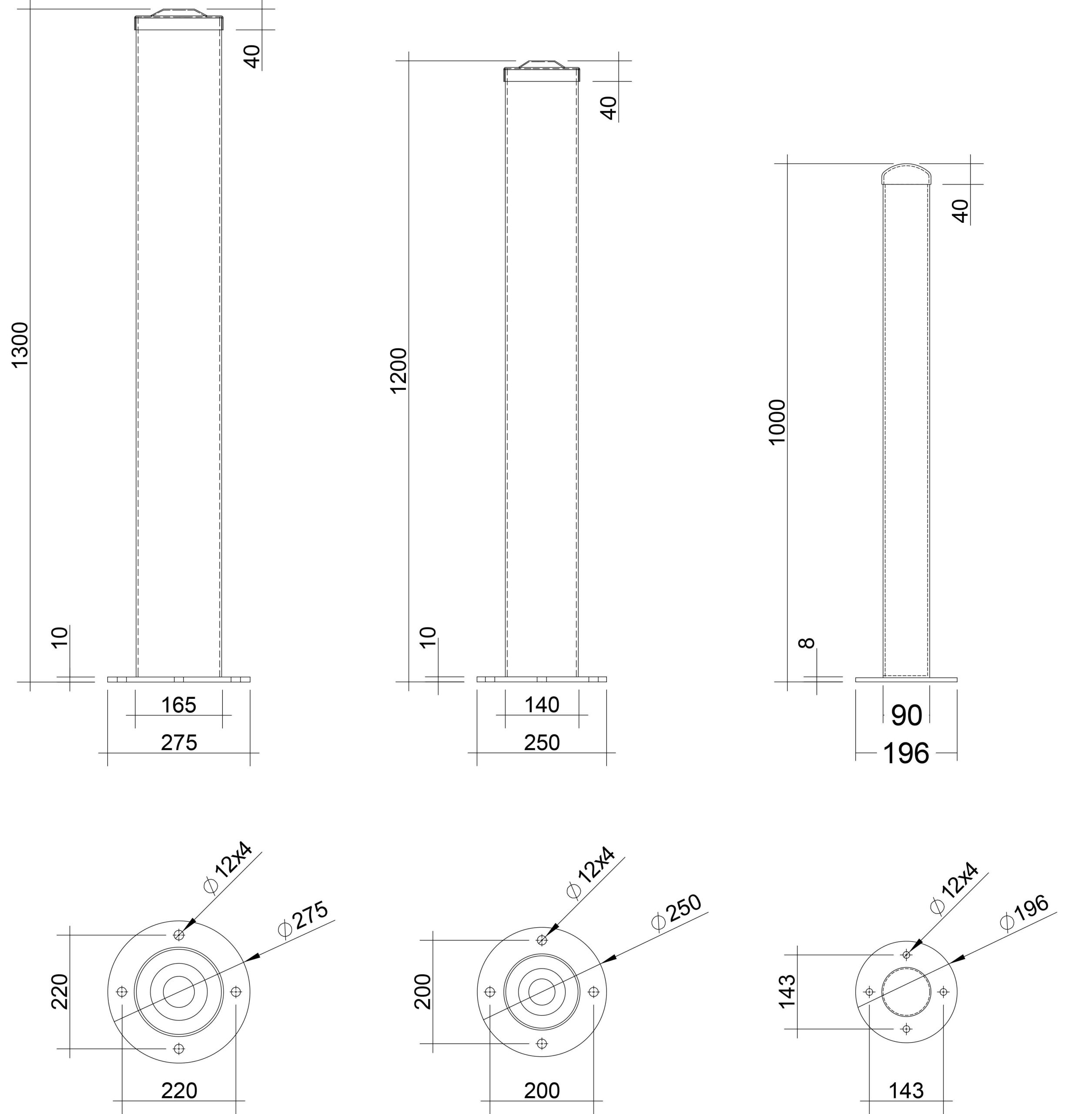 The bollards are surface mounted via a fully welded mounting plate with 4 fixing points. Fixings are also available for purchase.